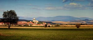 Drăușeni - vedere de ansamblu asupra bisericii evanghelice fortificate..jpg