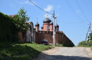 Вид на стены Крестовоздвиженского монастыря с улицы в Лукино (الروسية)