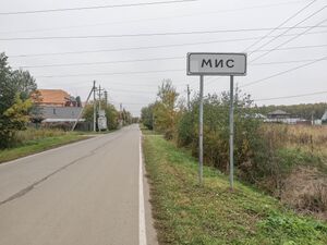 знак при въезде в посёлок (الروسية)