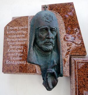 Мемориальная доска патриарху Владимиру на Свято-Покровской церкви на Подоле.jpg